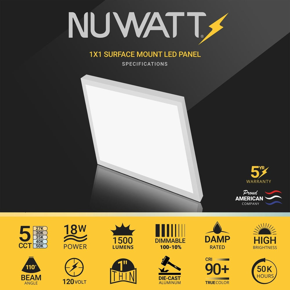 - 5 COLOR CHANGING TEMPERATURES SELECTABLE – With Nuwatt 12" x 12" LED Light Panels you can select the ideal color temperature for your space using a user-friendly 5 color temperature switch. Choose from: Soft White 2700K, Warm White 3000K, Neutral White 3500K, Cool White 4000K, and Daylight 5000K. Customize the light temperature based on your preferences and lighting ambiance.