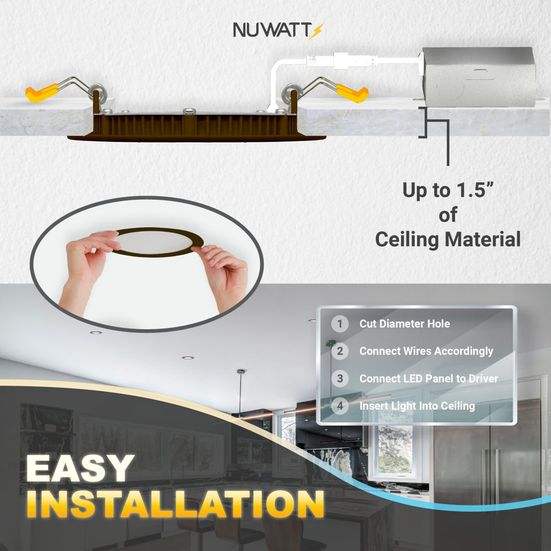 Switch Between 5 Color Temperatures — Choose the color of light you prefer all in one integrated 4 inch LED recessed lighting bronze. Simply slide the dip switch located on the junction box and choose between five warm or cool shades of white light ranging from Soft White 2700K, Warm White 3000K, Neutral White 3500K, Cool White 4000K, and Daylight 5000K.