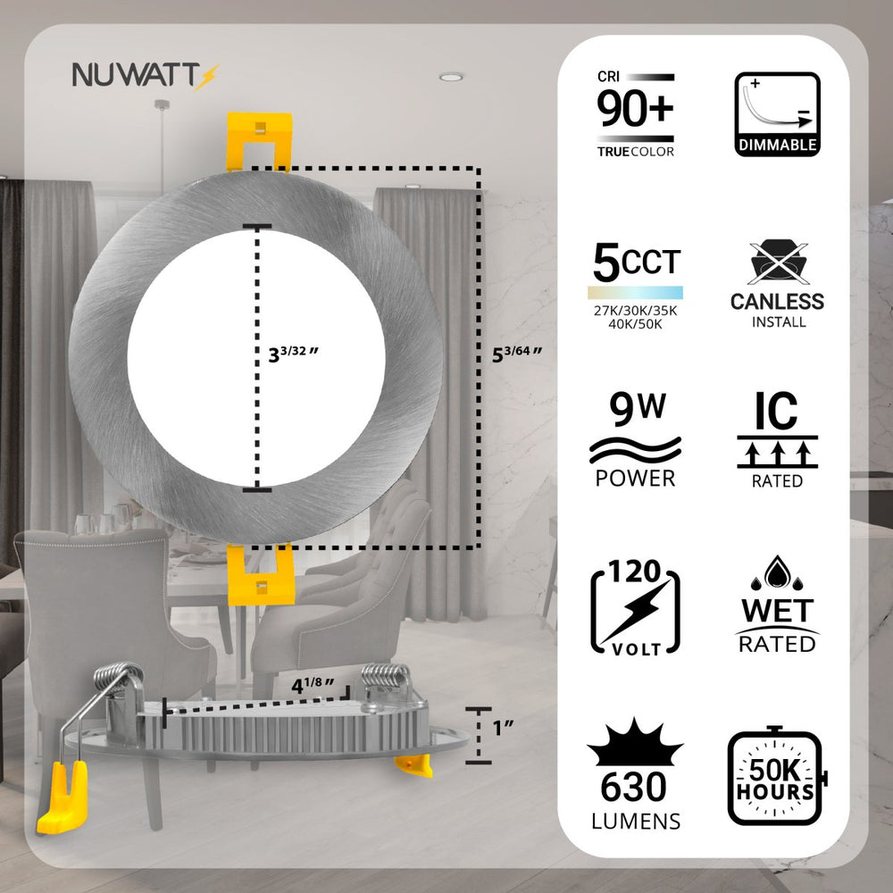 High Definition Color Rendering (CRI 90) — Experience high definition color representation with canless wafer lighting by NuWatt. Don't settle for dull colors in your home, business, or workspace.