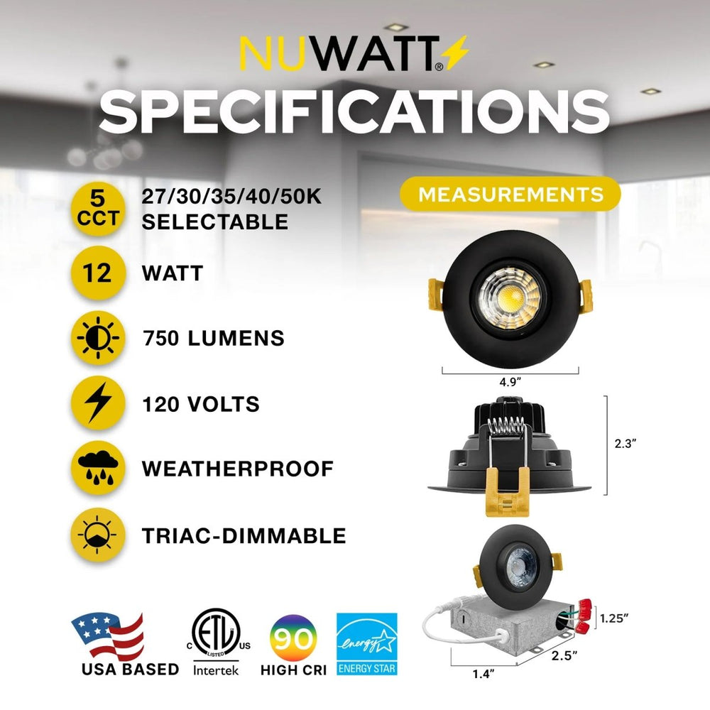 | Color Temperatures | 5 CCT: 2700K, 3000K, 3500K, 4000K, 5000K Selectable |